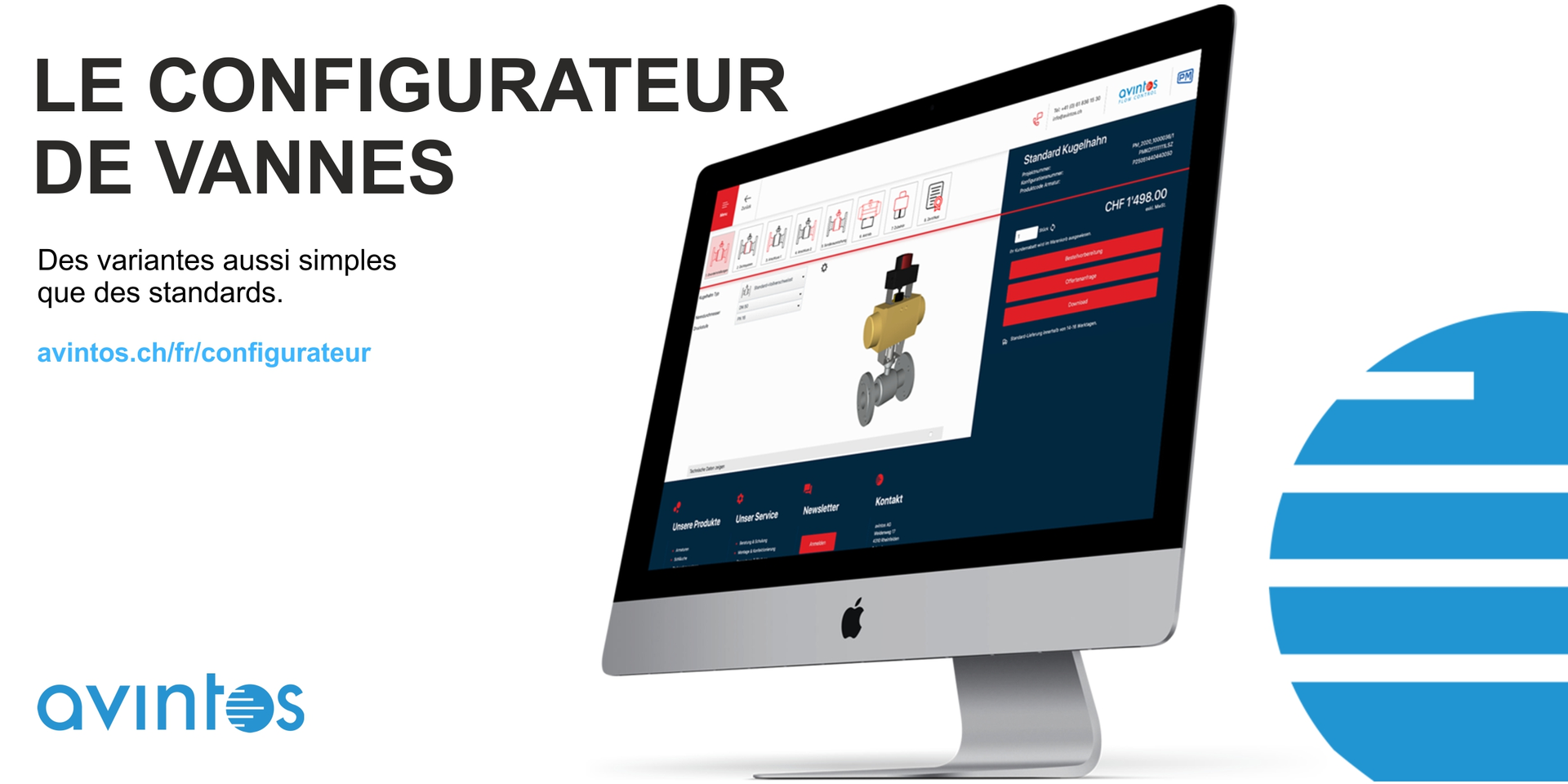 avintos offre la possibilité de tester cet outil innovant et de profiter d’une innovation numérique qui vous fera gagner du temps et vous épargnera du travail. Avec le nouveau configurateur de produit, vous trouverez toujours la solution optimale et ceci avec une simplicité, une rapidité et une sécurité étonnantes.